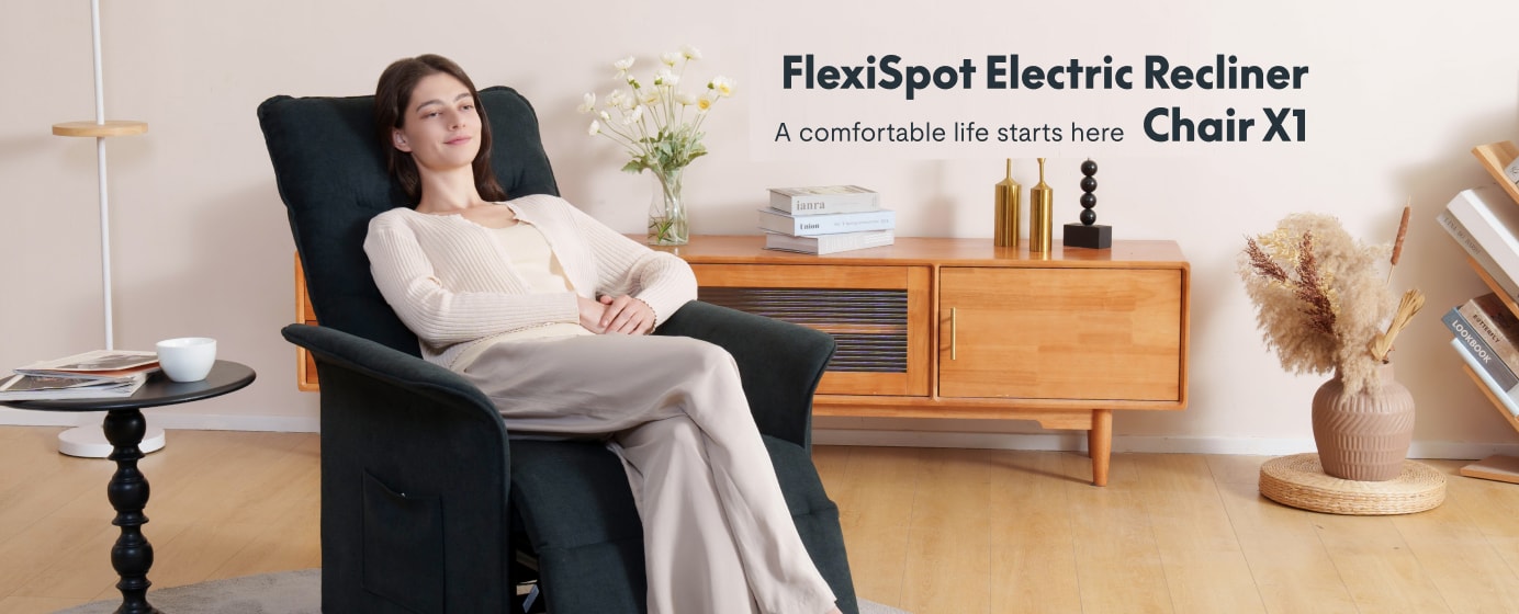 - El FlexiSpot sillón reclinable eléctrico X1 combina ergonomía premium con tecnología de reclinación simultánea innovadora, permitiendo ajustar tu posición de 105° a 155° con solo pulsar un botón