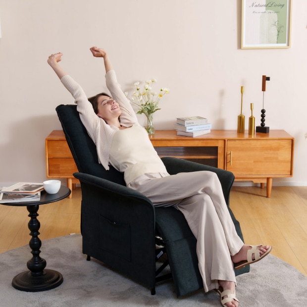 El diseño moderno y elegante hace que nuestro sillón reclinable sea adecuado para diferentes espacios. Ya sea en tu dormitorio, sala de estar, estudio u oficina, encaja perfectamente. Y el tamaño compacto de este sillón reclinable también lo hace ideal para su uso en espacios más pequeños.